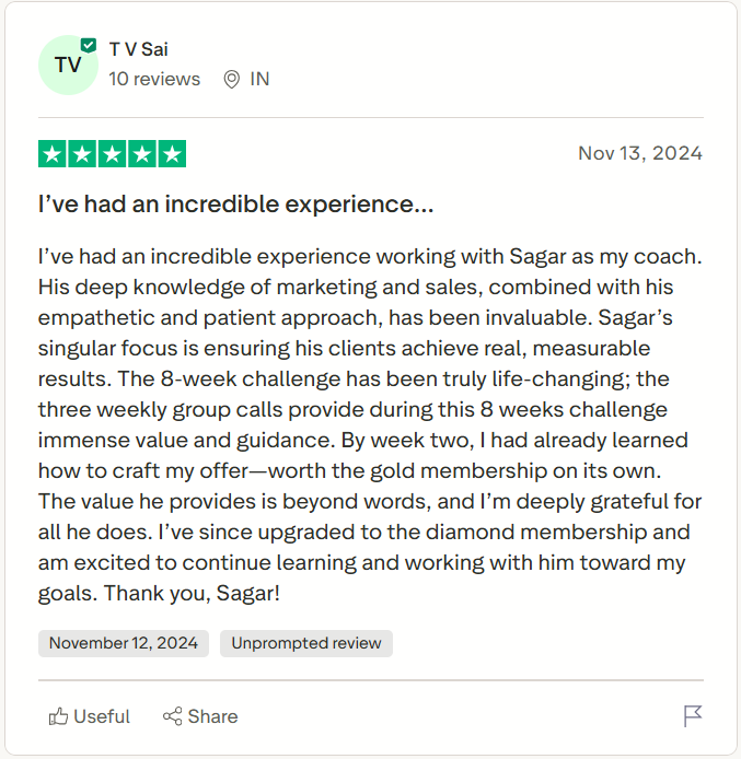 Two 1-on-1 Coaching Calls With Sagar (90 mins)